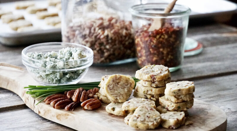 Read MoreSavoury, buttery shortbread wafers made with butter, crumbled blue cheese, chives, seasoning and chopped pecans… INGREDIENTS 1 cup unbleached all-purpose flour