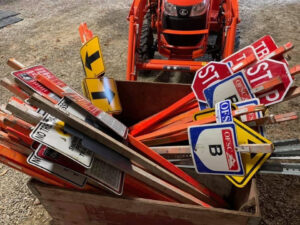 Trail users have an important role to play with trail signs. It starts with paying attention to their messages. Next is to treat trail signage with respect by not breaking or riding over them. Also, to grab a photo if possible and report damaged or missing signs to the local club or its volunteers. Finally, don’t be one of those who hangs stolen trail signs as man-cave decor.